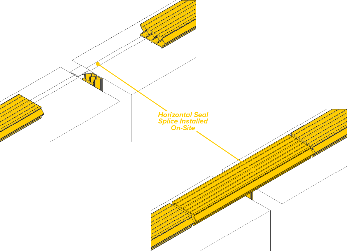 The system consists of extruded silicone gaskets that are adhered to the substrate/panels with silicone sealant. A proprietary ISEAL EP Exoskeletal 4-way splice is used at all four-way vertical-to-horizontal splices to ensure continuity of performance at splices.